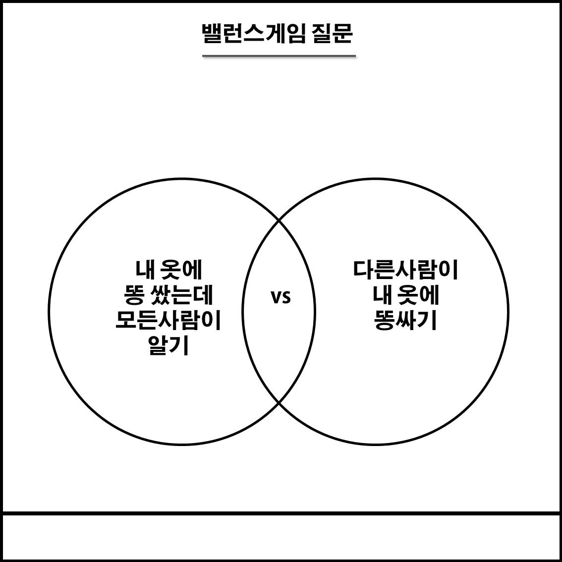 1. 내 옷에 똥을 쌌는데 모든사람이 알기 vs 다른사람이 내 옷에 똥싸기